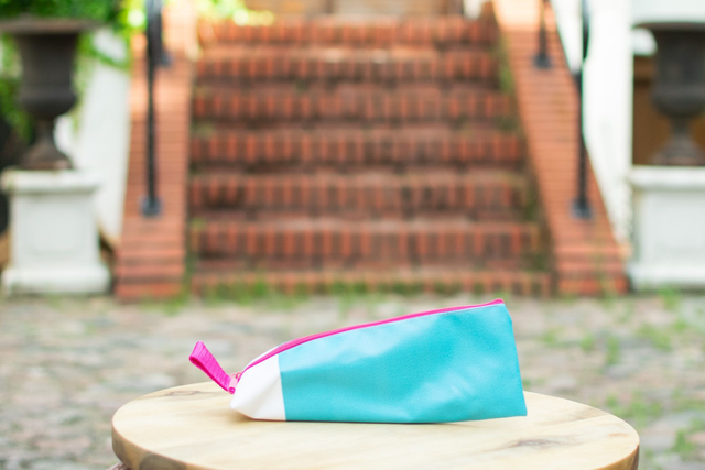 Unique pencil case made out of upcycled event banners. Sturdy canvas material. Dimensions approx. 22.5cm x 9cm x 0.5cm with a zipper on top.